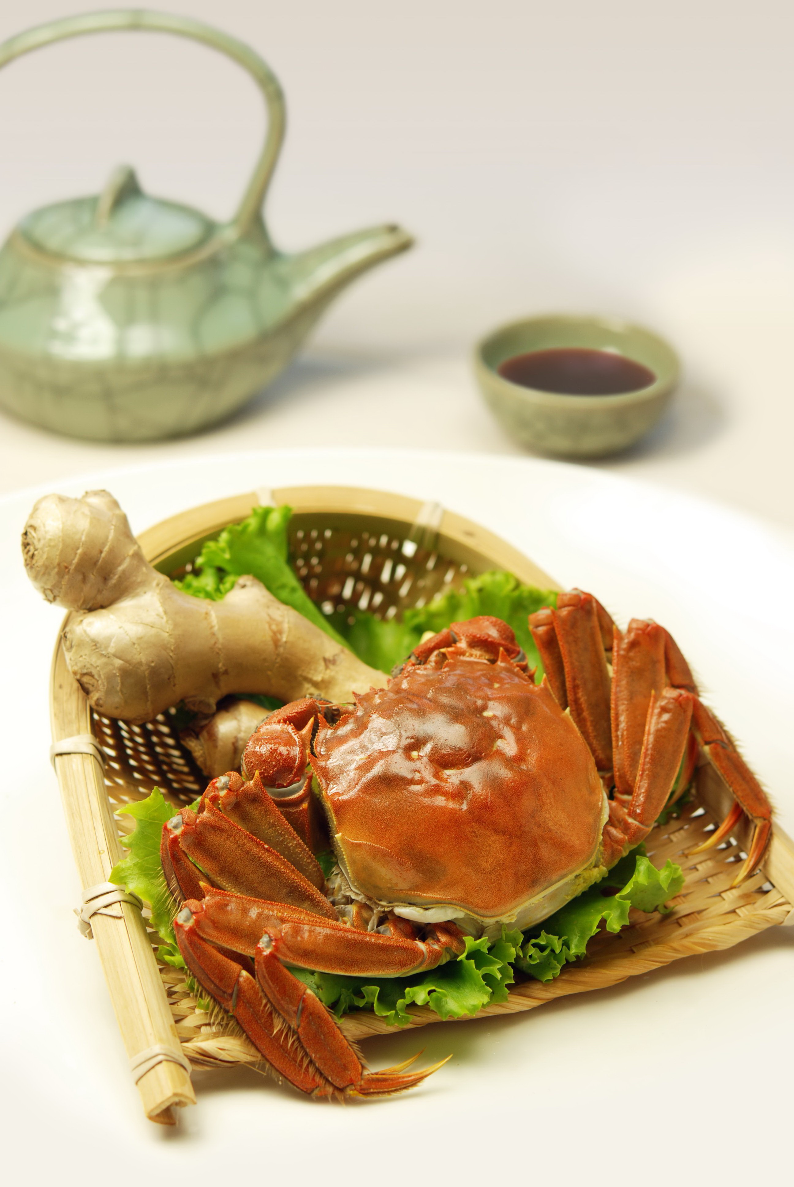 膏黃飽滿的大閘蟹雖然誘人,但蟹類性寒,體質較虛者不宜多吃,因此理想大地飯店主廚貼心備妥啖蟹「三寶」,讓每位賓客滿足口腹之欲的同時也照顧到身體腸胃。理想大地飯店強調以簡單手法烹調,保留大閘蟹的甘甜鮮味而推出「紫蘇葉蒸大閘蟹」,大閘蟹搭配祛寒解毒的紫蘇葉進行清蒸,當雙手撥開澄黃蟹身的瞬間,飽滿的蟹膏與蟹黃也挑逗著眾人期待的心情,接著一口咬下果然不負眾望,滿嘴飄散濃郁的鮮美滋味,而蟹肉的Q彈甜美同樣令人吮指回味,此時飯店主廚建議可蘸點薑醋,除了提味之外,還具消毒殺菌與助消化的作用。當賓客大快朵頤一番後,最後飯店還會貼心端上一杯熱騰騰兼具暖胃之效的紅糖薑茶,才算為品嚐秋蟹這道人間美味畫上完美的句點。