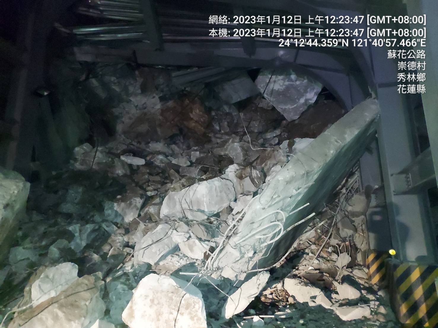 第四區養護工程處表示,蘇花公路大清水隧道及13號隧道中間的明隧道內,發生嚴重坍方,目前雙向無法通車!