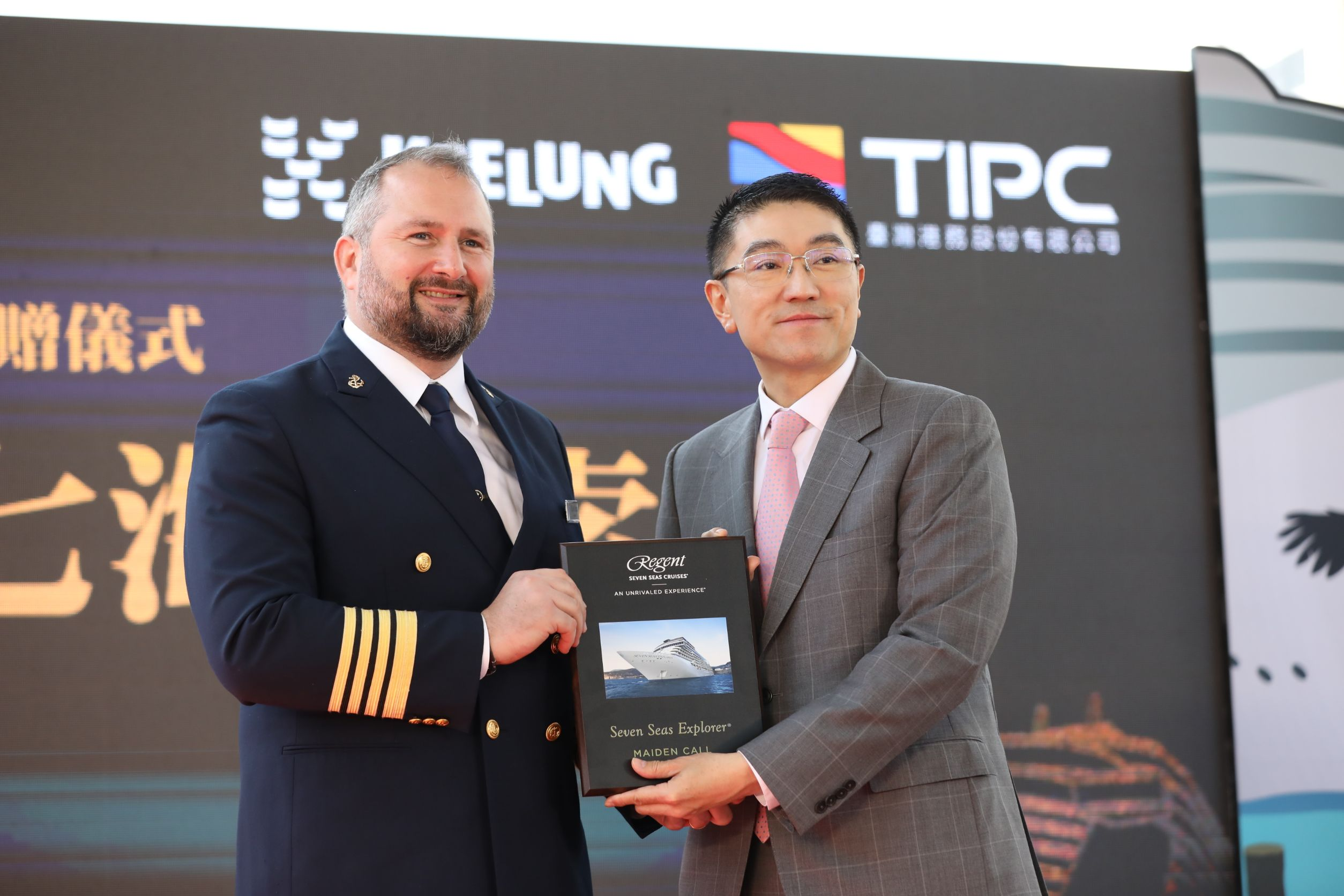 基隆迎接疫後首航國際郵輪,臺灣港務公司和基隆市政府今(7)日在東岸旅客中心,舉辦「#是時候了」基隆港郵輪復航典禮,市長謝國樑致贈威士特丹號、七海探索者號兩位船長郵輪造型抱枕,歡迎旅客看郵輪、搭郵輪,就來基隆!