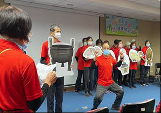 「國寶動動操」-由專業職能治療師將經典文物創意發想出適合長者的健康操動作,帶領學員從動作中更進一步認識故宮文物,另每堂課前10分鐘也安排學員輪流帶操,訓練團隊自我管理,同時達到防疫健身的功效。
