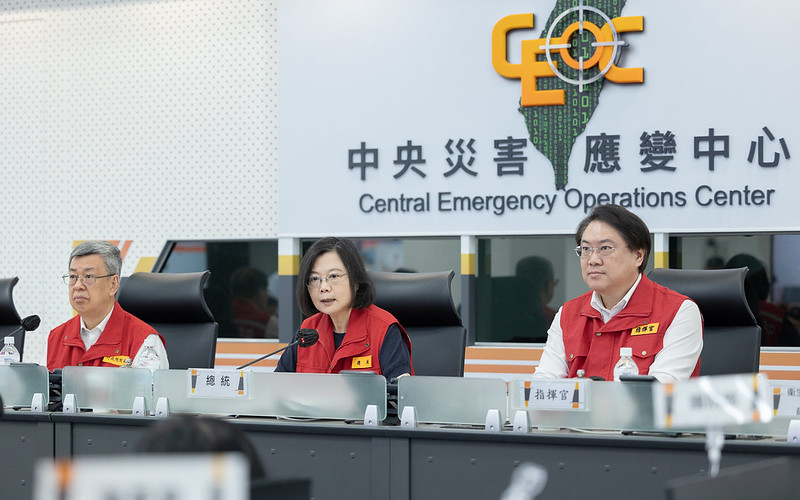 蔡英文總統偕同陳建仁院長視察中央災害應變中心