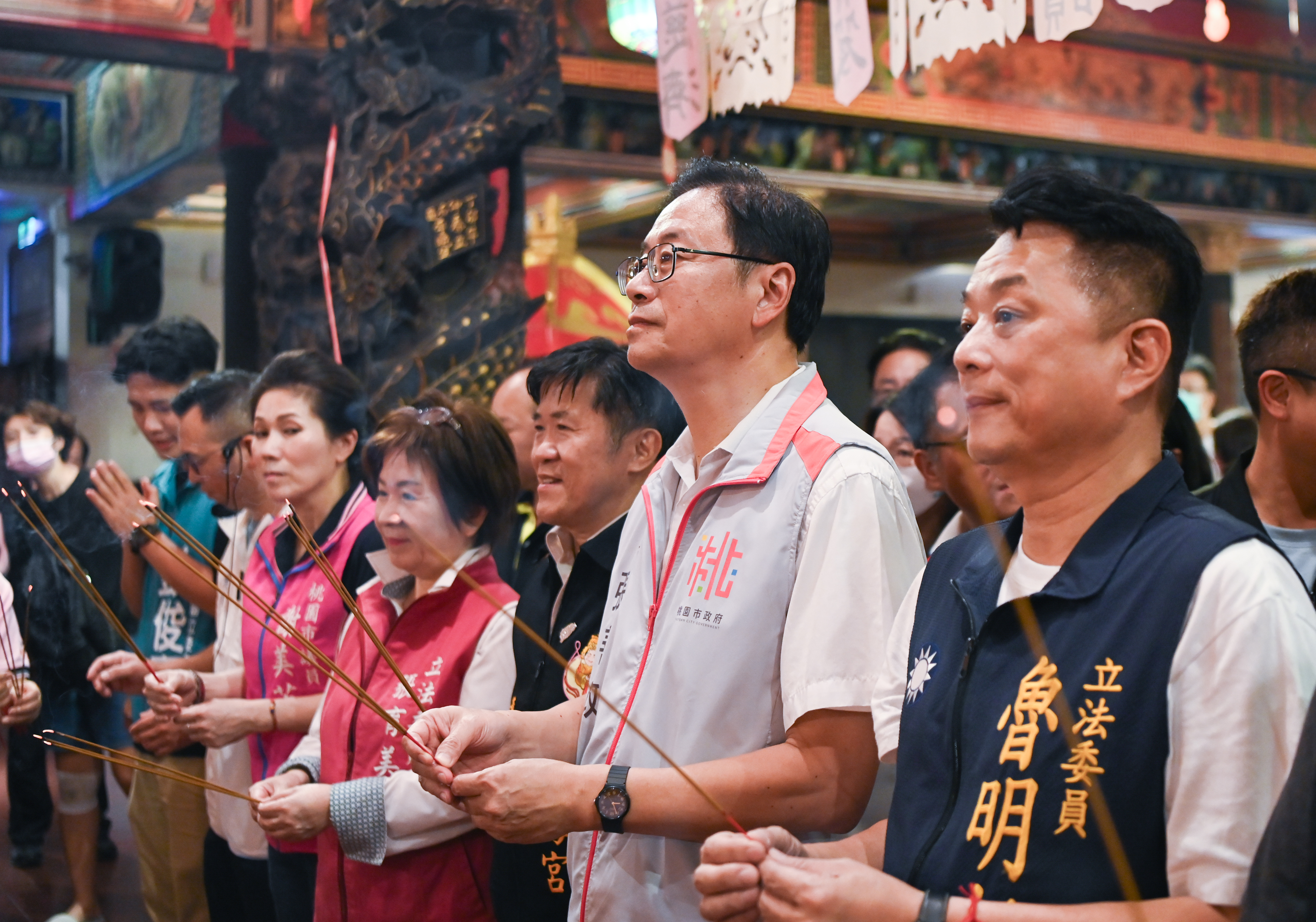 今日包括立法委員魯明哲、張育美、市議員劉曾玉春、彭俊豪、謝美英、魏筠、市府民政局長劉思遠、客家局長林昭賢、中壢區長李日強、中壢區中壢里里長官鍾秀鳳、中建里里長李應偉、中榮里里長劉文正、仁海宮董事長王介禧等皆一同出席。
