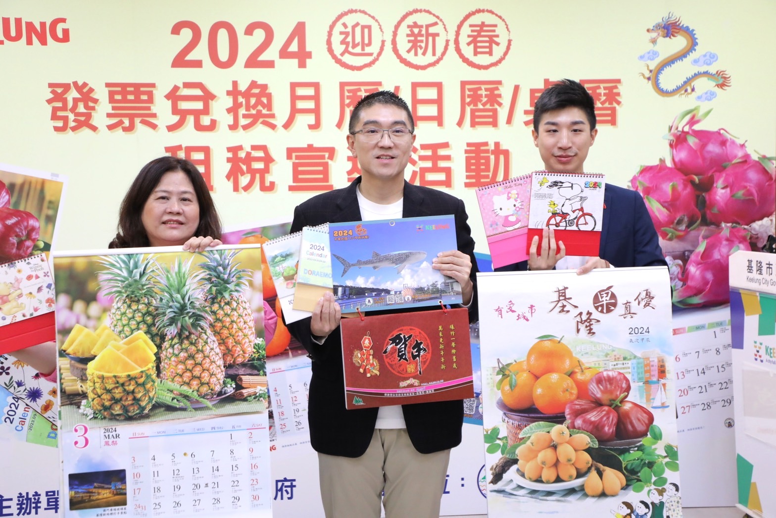 為鼓勵民眾購物消費使用載具,透過雲端發票取代紙本發票,以達到節能減碳愛地球的目標,基隆市稅務局將於11月11日週六上午8時30分,舉辦「2024年迎新春,發票兌換月曆、日曆、桌曆活動」,市長謝國樑今(7)日在記者會上,偕同稅務局長歐秋霞、市府發言人余治明,歡迎市民踴躍兌換,強調今年的月曆將結合施政亮點、桌曆將融合卡通人物IP,相信大小朋友都會喜歡,並響應節能減碳做環保,同時預祝基隆市民龍年吉祥、四季平安,歡迎全國好朋友來基隆踩點與享受美食。