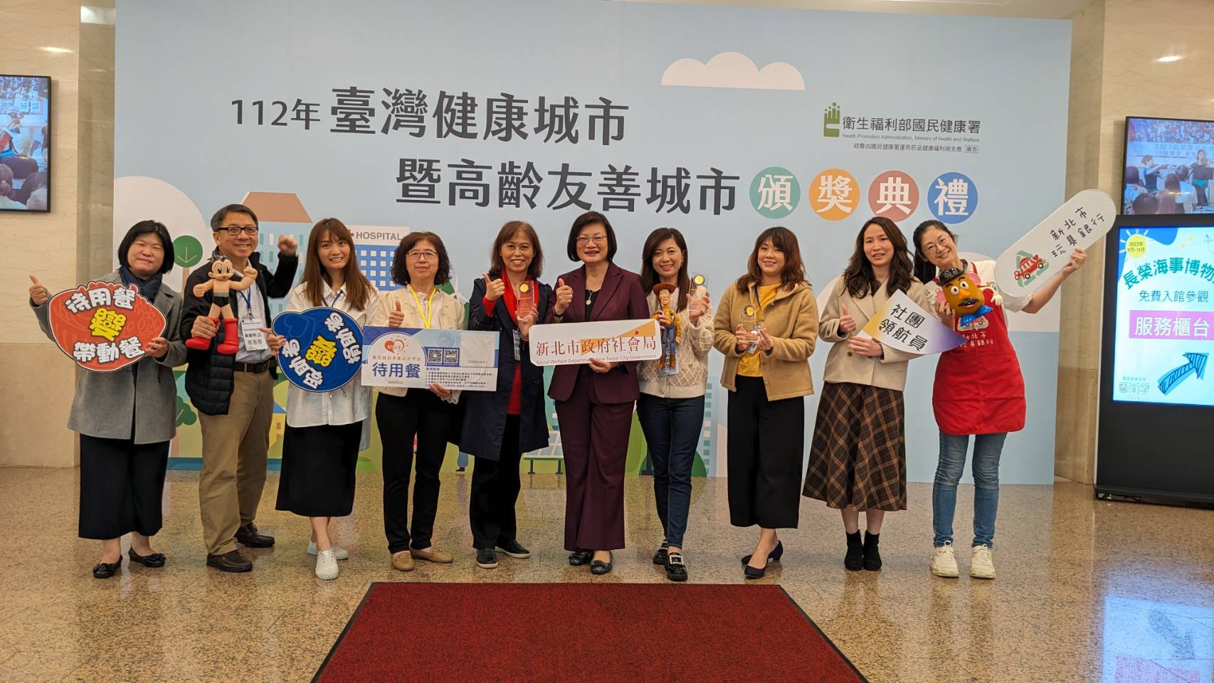 新北市推動二手玩具、待用餐、高年級社團領航員等成果斐然,榮獲衛福部國民健康署112健康城市暨高齡友善城市獎。另外社區照顧據點應用E化管理和長輩生理量測科技化也獲得海報獎,共4個大獎。社會局長李美珍表示,無論是永續環保的政策、弱勢關懷的優先、高齡人力的開發和尊重,或是智能城市的推動,新北市都會在既有基礎上,百尺竿頭、更進一步!