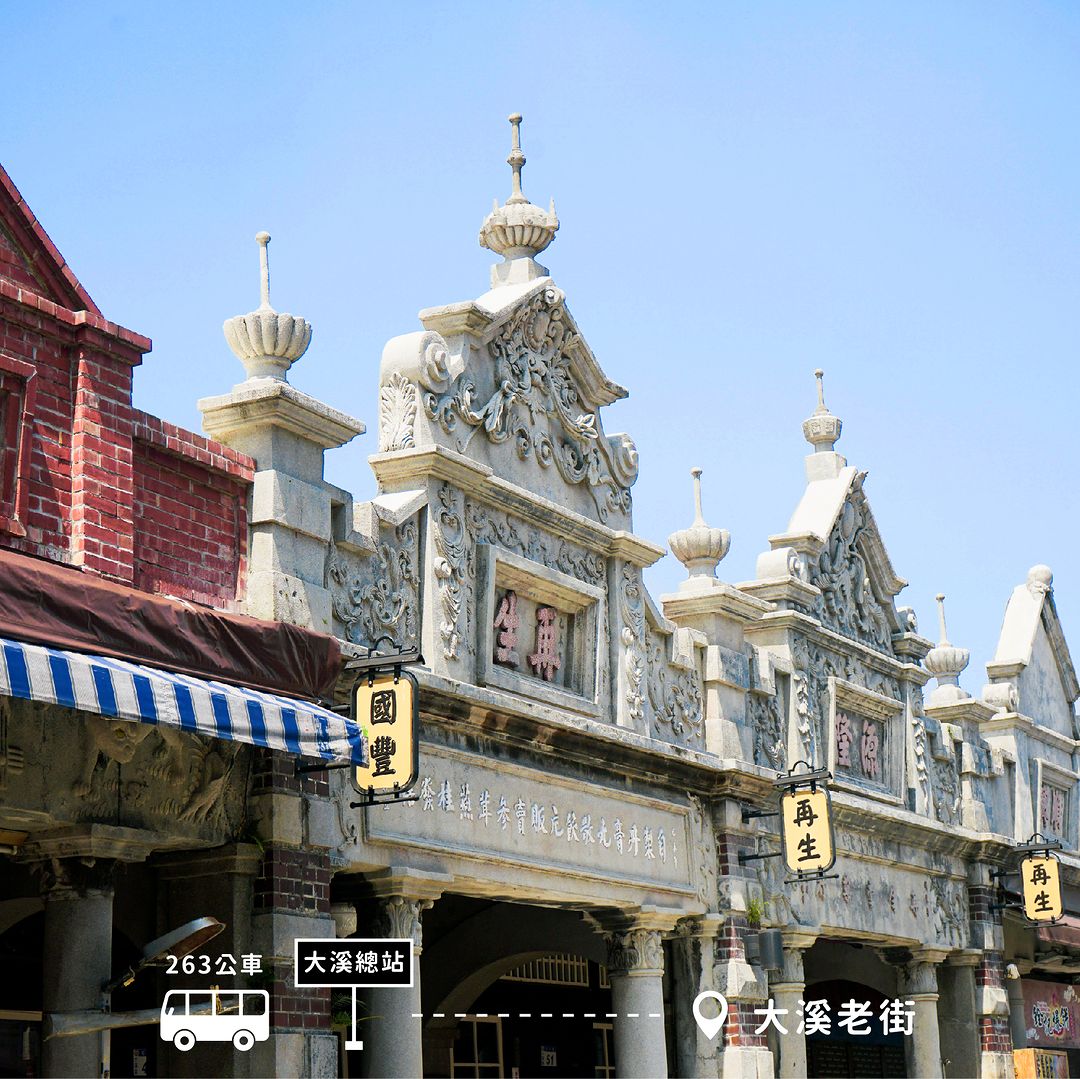 大溪是桃園最早發展的地方,透過大漢溪小帆船行駛淡水河,與大陸貿易興盛,造就了許多商號與商賈。日據大正時代流行巴洛克建築風格,和平路、中山路等老街,各商號融合巴洛克式繁飾主義和閩南傳統裝飾圖案,包括希臘山頭、羅馬柱子和中式的魚、蝙蝠等祈求吉慶的圖案混合,形成一種大溪專有的特色。和平老街因為開發較晚,老屋的保存狀況也較好,街上特色商店林立,十分熱鬧。