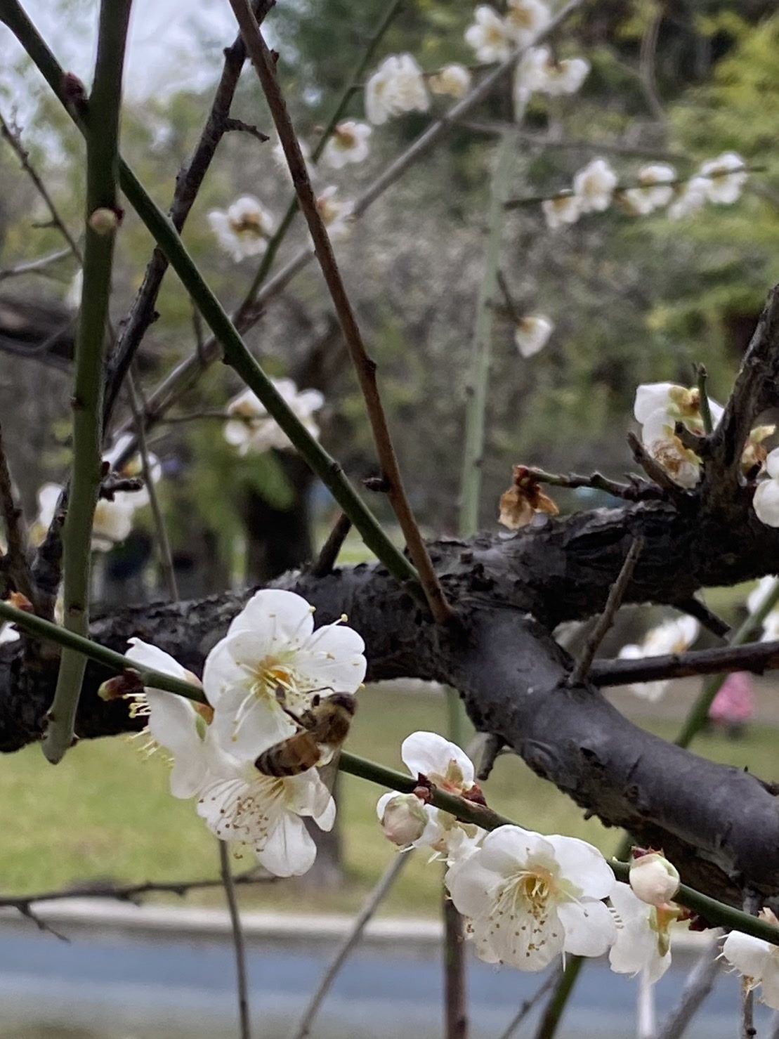 公園處圓山所楊國瑜主任表示,榮星花園公園平時遊客流量很多,同時也是當地居民常態休憩運動地點。近來增加許多賞梅的遊客,荷花池旁的老梅樹群一躍成為攝影愛好者的拍照熱點,蜜蜂忙碌穿梭在一叢叢花瓣中採蜜,帶來生意盎然的氣息。榮星花園公園是春節連假賞梅最佳秘境之一,現在正逢欣賞梅花最佳時機點,歡迎大家到榮星花園公園賞花,感受「梅」開眼笑的小確幸。