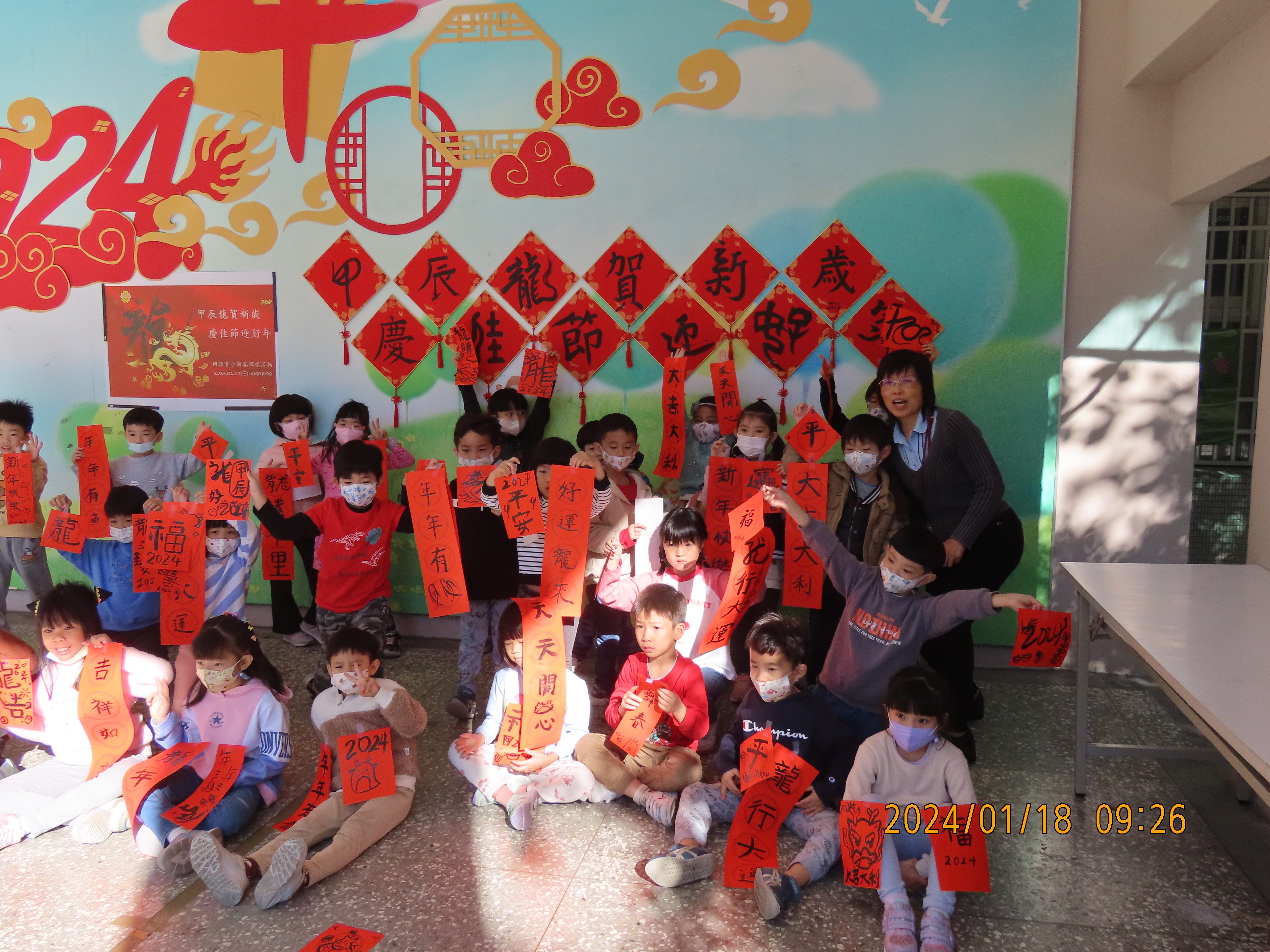 農曆新年快要來到,國語實小「甲辰龍賀新歲、慶佳節迎好年」新春揮毫活動在113年1月17日正式展開,多位師長、家長會長、志工團長及學生代表擔任開筆嘉賓。為了讓學生能瞭解書法藝術美學,配合節氣增添過年及慶賀熱鬧氣氛,發揚及傳承中華傳統文化民俗及培養良好品德教育,本校持續在正式課程及課後學習中推廣書法藝術學習,並於每年農曆年前特別舉辦春聯揮毫活動,期盼將「生活藝術化,藝術生活化」的理念及素養落實在日常學習中,也在辭舊歲迎新春之際,藉著活動襯托出新年歡樂的校園氛圍與祈福來年願望。