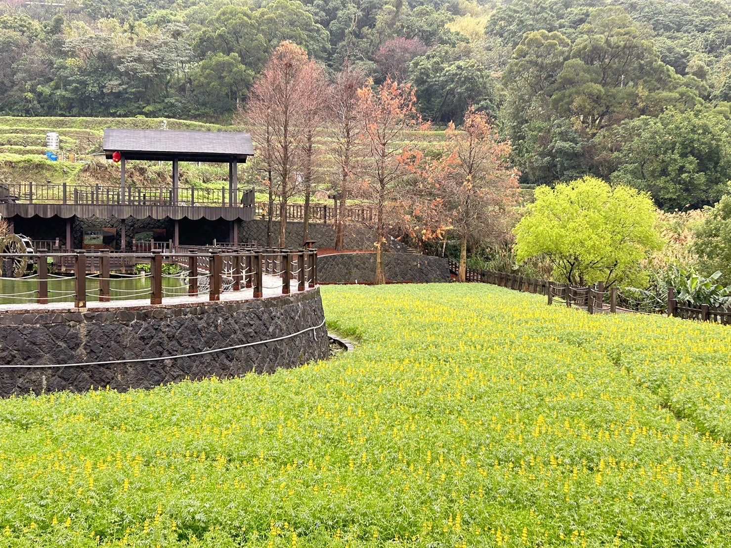 樟樹步道不單是賞花的絕佳景點,更是一條兼具自然美與文化深度的步徑,遊客可在花海間漫步,同時欣賞富含鄉村韻味的牛車、水車、涼亭、水梯田、轉轉穀倉與藝術裝置。