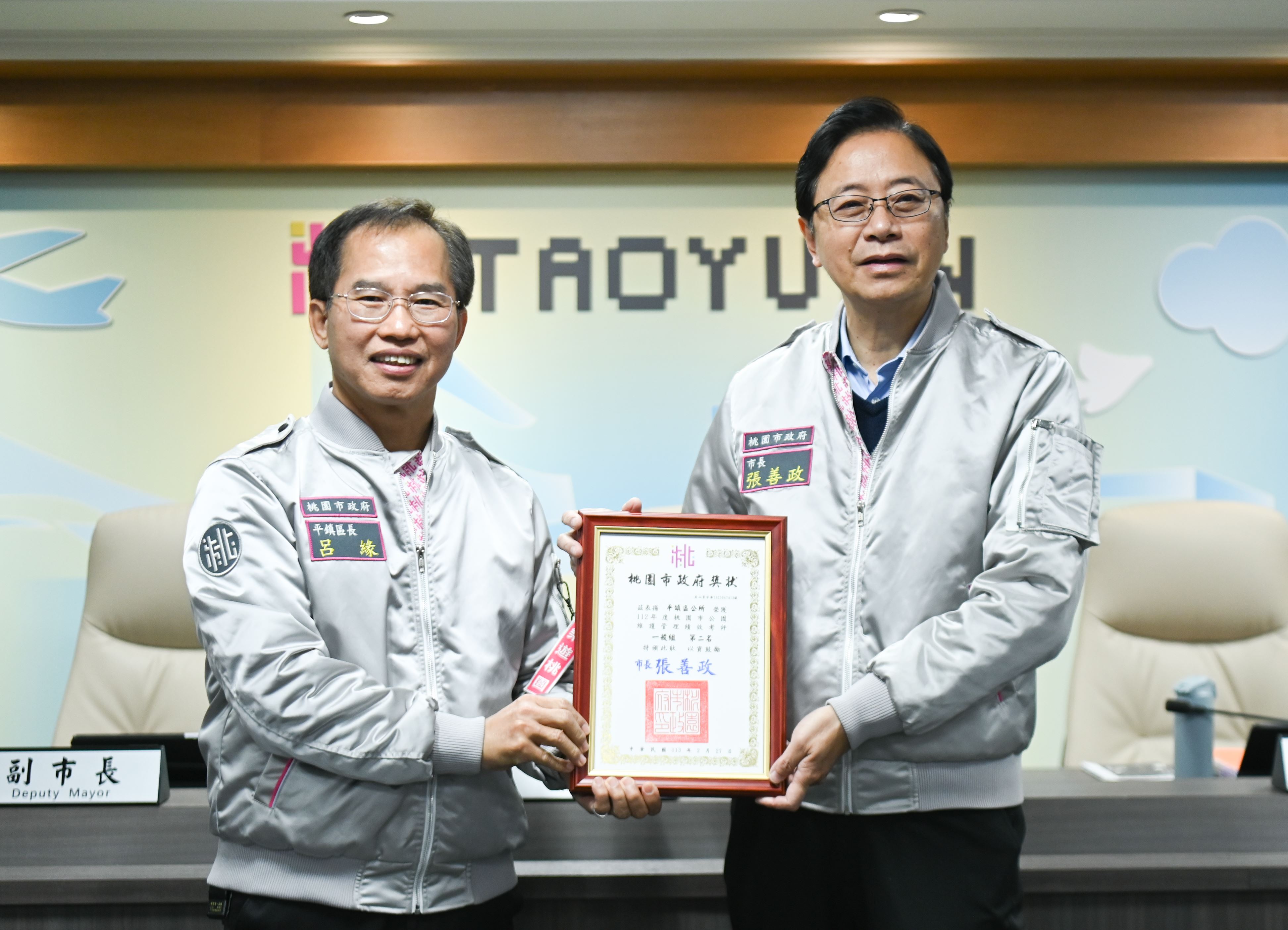 桃園市長張善政今(27)上午主持市政會議,頒發「112年度桃園市公園維護管理績效考評績優機關獎項」。張市長表示,很多市民朋友都希望住家附近能夠有公園,而市府闢建公園之後,要感謝所有管理單位努力維護,讓轄區內各個公園賞心悅目,他也期許同仁持續用心照顧維持公園環境,讓桃園更好、成為宜居城市。