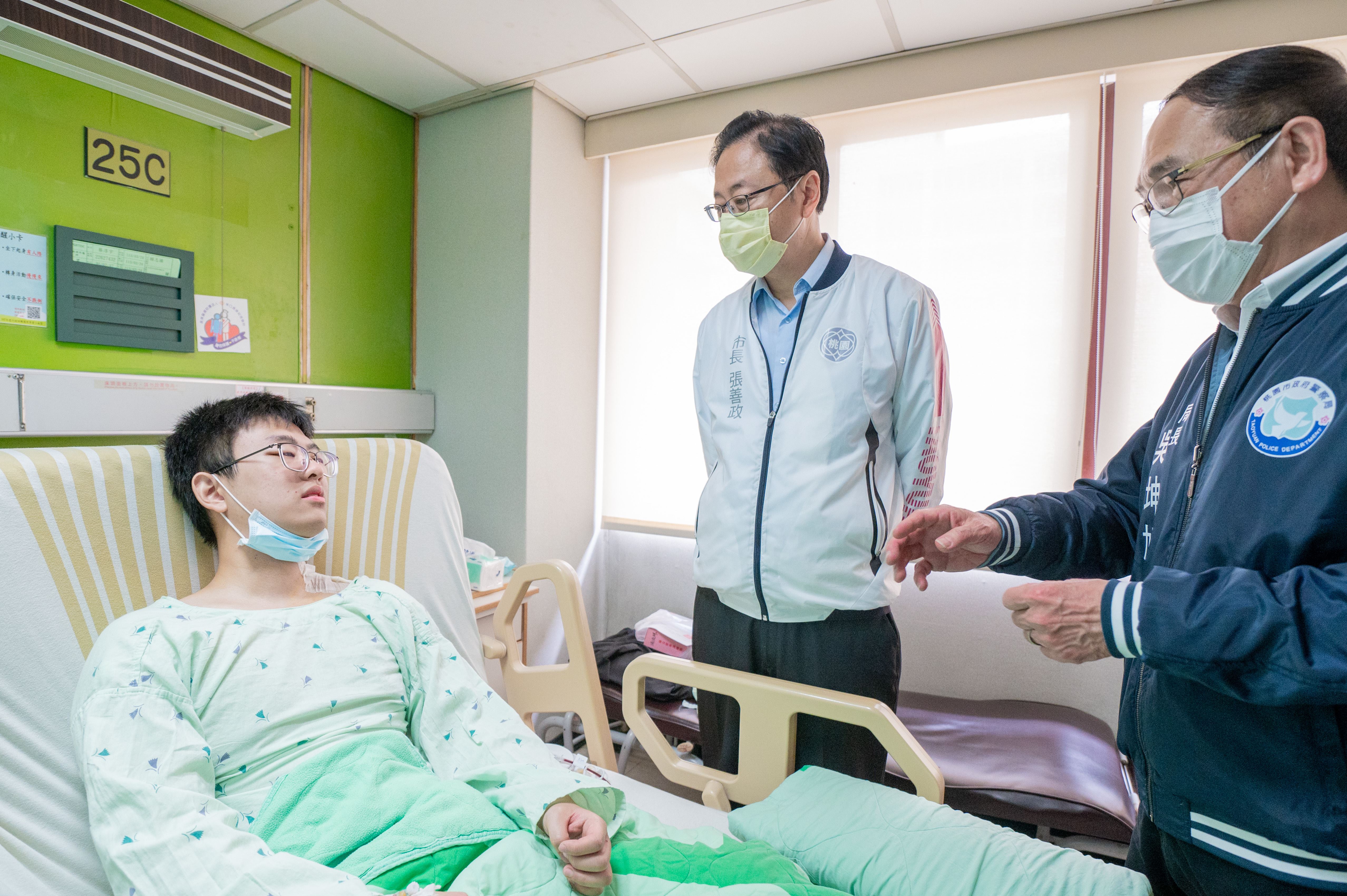 另外,張市長也當面向員警的父母致意,並致贈慰問金,蔡員警的父親是退休警察,兩代投入打擊犯罪,令人非常敬佩。並且親自向主治醫師了解員警傷勢,希望他接下來好好復健,早日康復。