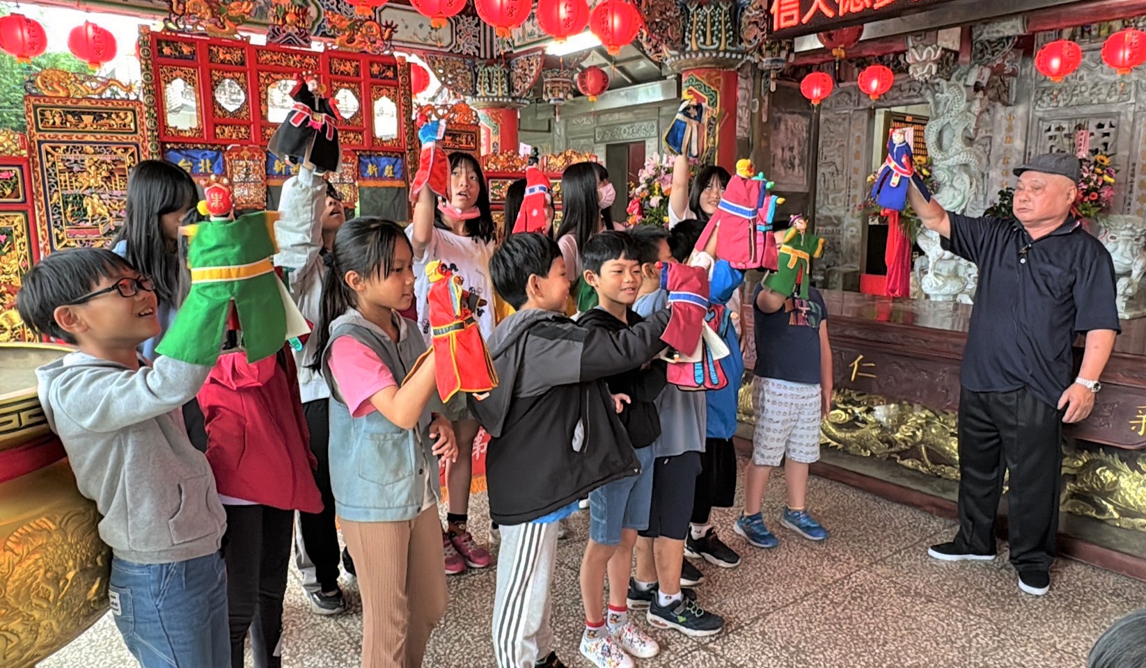「校園瘋文資」前進極東媽祖廟 領貢寮國小師生尋龍、賞布袋戲