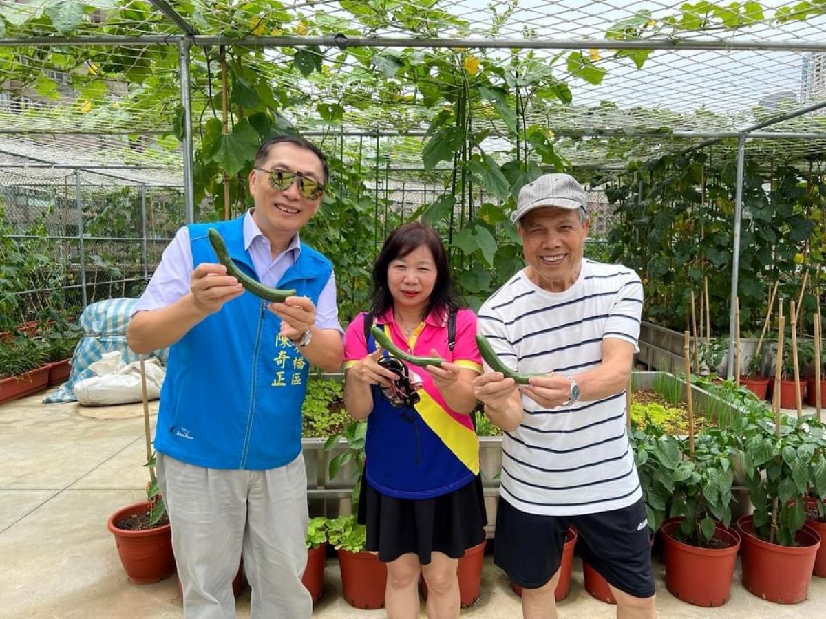 板橋區長陳奇正表示,採收的作物作為老人共餐的食材,長輩們不僅期待每次採收的加菜時刻,透過親手摘採的過程與共同享用辛苦栽種的成果,更能親身體驗到食物取得的不易,也能深刻體會食安的重要性,從而更珍惜收成所得。