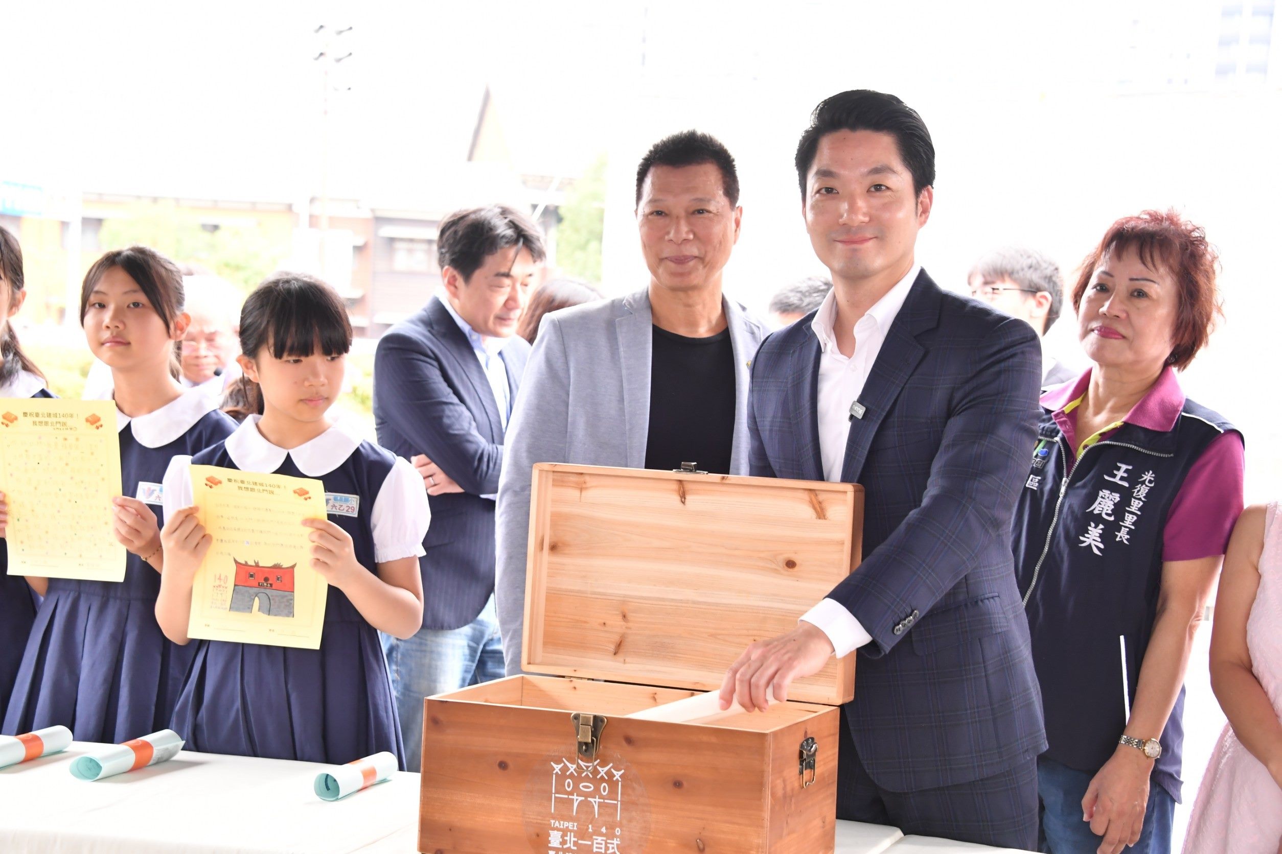 臺北市長蔣萬安今(22)日出席臺北建城140週年系列活動「北門祈福時光盒儀式」,蔣萬安特別寫下對北門的祝福,這個祝福也將放入「祈福時光盒」,將於北門修復工程上樑儀式當日,妥善保存於北門二樓,期待古蹟修復後,再次開啟時光盒,迎接未來臺北的城市發展。