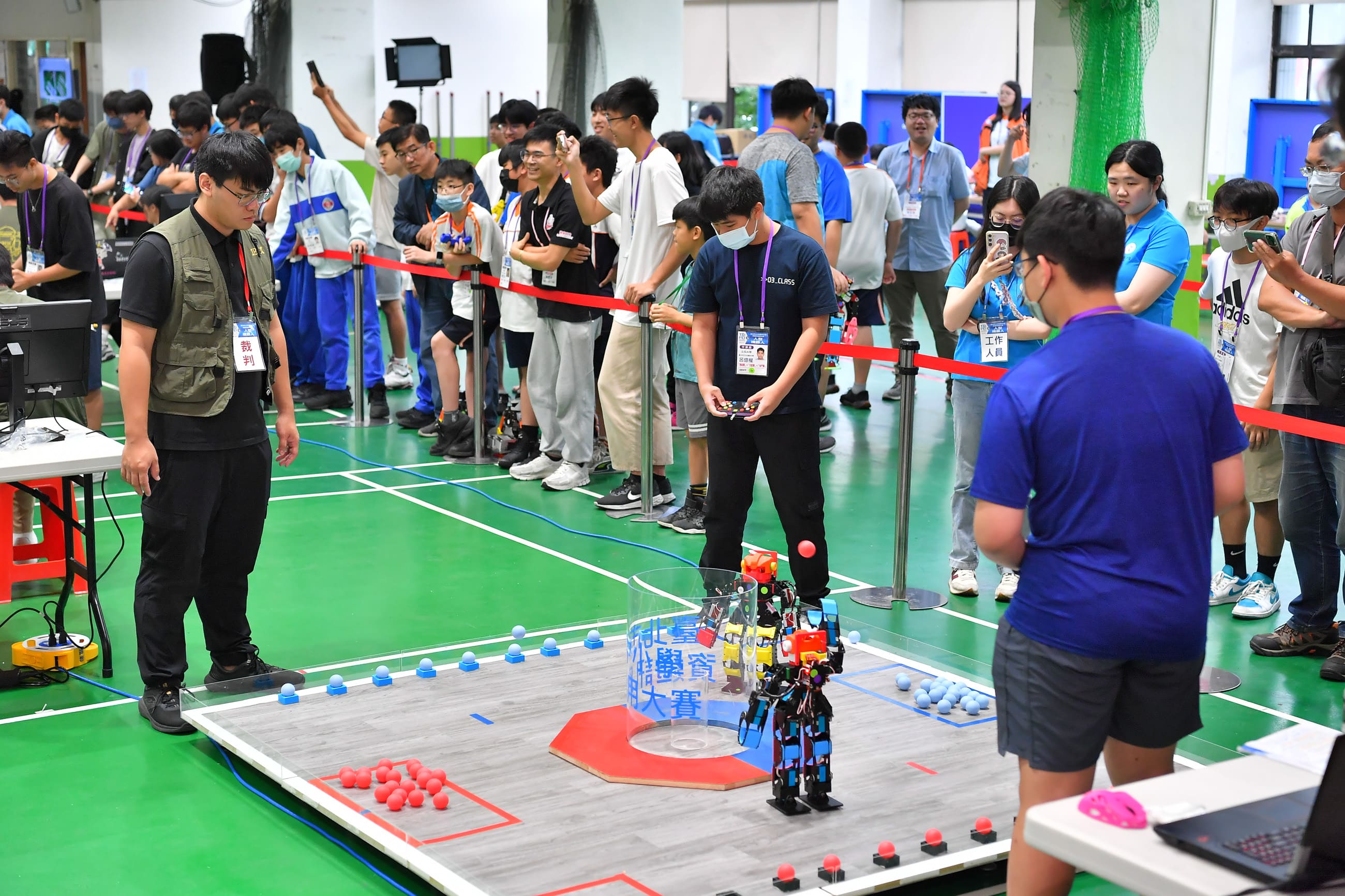臺北市政府教育局(下稱教育局)113年度重點科技競賽「中小學資通訊應用大賽」連續三天賽事於木柵高工登場,今年設有「智組型機器人」與「人型機器人」兩項比賽,共吸引221隊489名選手同場競技,考驗選手機電整合、程式設計、維修組裝及力學等綜合應用能力!競賽特別聘請專家學者命題,設計出兼具「實務運用」、「問題解決」和「邏輯思考」等概念的競賽題目和情境,鼓勵學生將跨域知識融入競賽,享受更高層次的學習體驗。