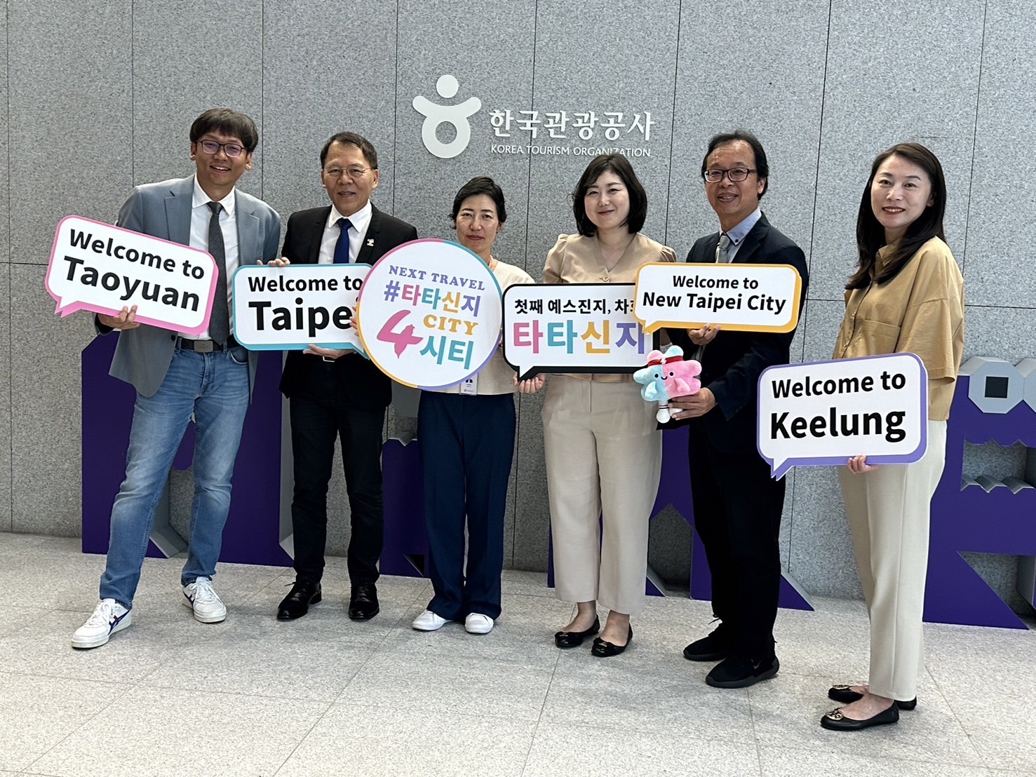 為加強與韓國觀光推廣官方及民間單位交流,了解在地想法及建議,今(11)日由桃園市政府觀光旅遊局周柏吟局長、臺北市政府觀光傳播局王秋冬局長、新北市政府觀光旅遊局楊宗珉局長及基隆市文化觀光局江亭玫局長共同前往拜會韓國三大觀光推廣機構,包括韓國最大旅行業協會-韓國旅行業協會(KATA)吳敞熙會長、韓國觀光推廣官方機構-韓國觀光公社國際行銷室李賢真部長及舉辦韓國大型旅展的韓國國際會展公司(KOTFA) 李昌淵行銷室長,都親自接待四市局長並暢談合作計畫,其中,韓國旅行業協會吳敞熙會長表示,韓國和台灣的觀光交流相當緊密,非常開心這次北台四市局長一起來到韓國推廣,讓台韓雙方業者多多相互交流,期許未來台韓觀光業者間能夠更頻繁的合作互動,彼此成為重要的合作夥伴;同時,韓國觀光公社李賢真組長也表示未來希望可以與四市共同宣傳,結合雙方宣傳資源,以達到共同宣傳目的。此外,KOTFA金大英次長表示,旅遊行銷能與商業行為相互連結,期待未來基北北桃積極與KOTFA合作為一個觀光交流平台,增加台韓雙方交流機會,KOTFA也願意協助桃台新基旅遊品牌在韓國的宣傳。