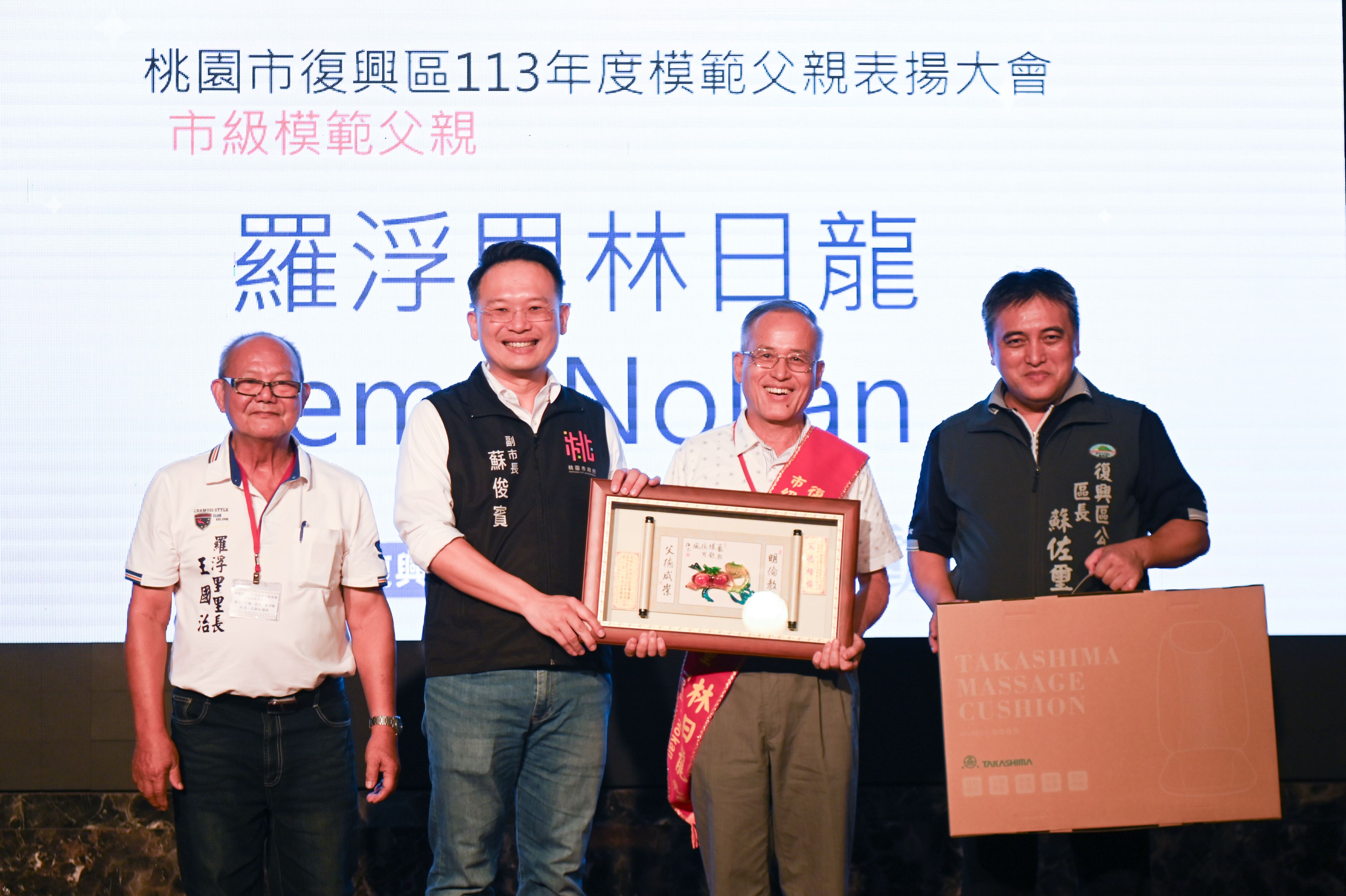 蘇副市長指出,他職場上的老同事,前原民局長林日龍今年獲選為市級模範父親;蘇副市長談到,原住民族議題特別需要仰賴在地人才,也感謝林前局長的努力,幫復興區的建設與服務品質打下良好的基礎。