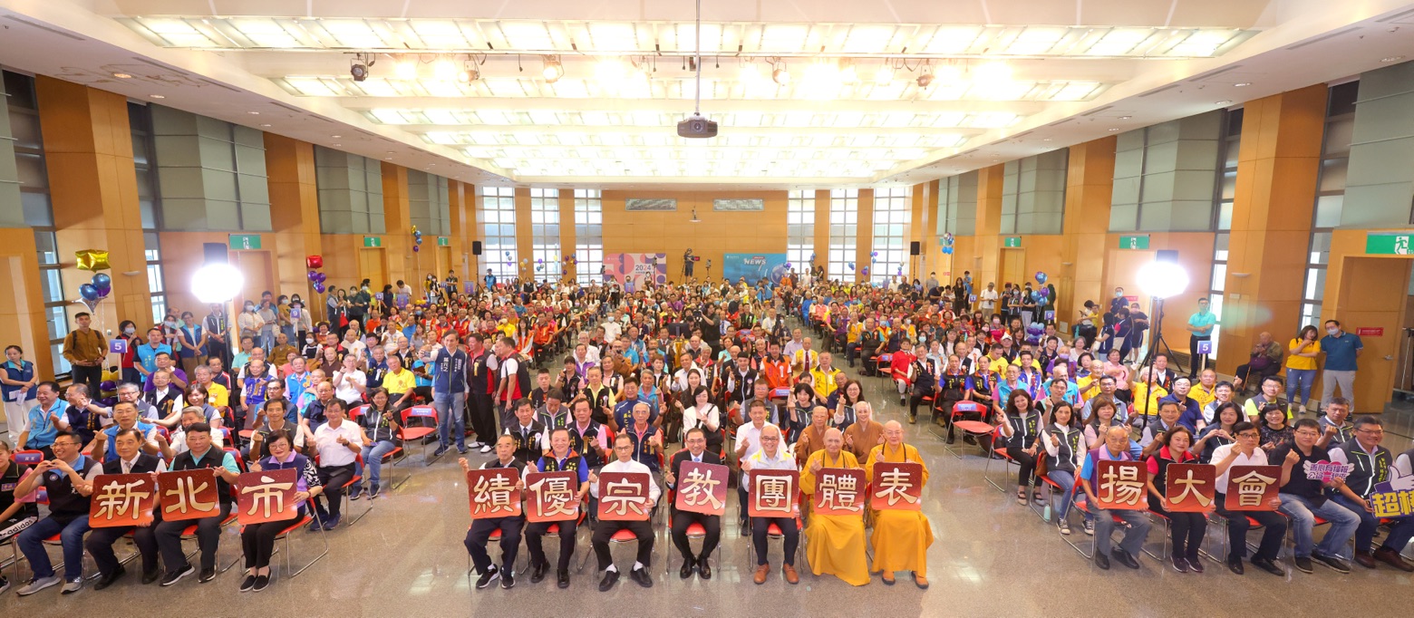新北市政府今(31)日舉辦「2024新北市績優宗教團體表揚大會」,由市長侯友宜表揚130個績優宗教團體,頒發「公益慈善」、「社會教化」及「個人奉獻」三大類共262個獎項。侯友宜感謝宗教團體的無私奉獻,新北市許多宗教團體樂善好施,時常捐款、捐贈物資,帶給社會正向溫暖的力量,期盼透過表揚大會,讓助人精神發揚光大。