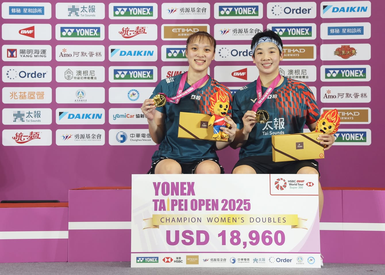 「2025台北羽球公開賽」經過世界各國菁英選手連續6天激戰,昨(11日)最終決戰,臺灣男女雙打告捷,女雙第一種子謝沛珊/洪恩慈勇奪冠軍,而男子雙打則由王齊麟/邱相榤搶下「麟榤配」搭檔首冠。