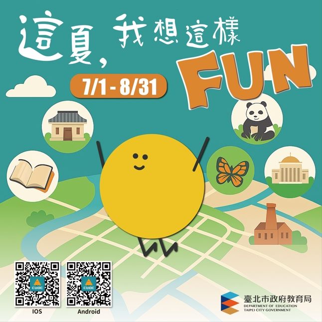臺北市政府教育局為鼓勵本市親師生善用數位學習資源並實踐自主學習,今(114)年暑假推出「這夏,我想這樣FUN」酷課APP暑期任務活動,串聯本市5場館、2特展,設計10項互動任務,邀請親子攜手踏上夏季學習旅程,提升學習動機與探索力。