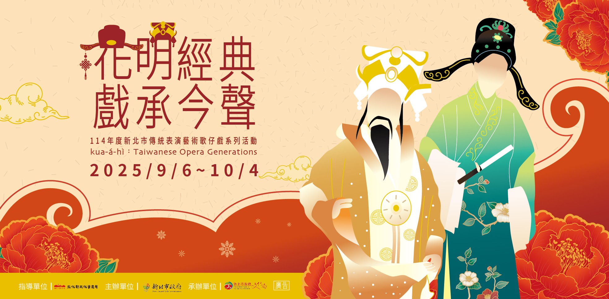 新北市政府文化局自9月6日至10月4日推出「花明經典‧戲承今聲」系列活動,共規劃4場演出與3場專題講座,完整呈現新北市歌仔戲保存者王束花、周洪明雪2位藝師的經典作品。歌仔戲是臺灣唯一在地孕育的傳統戲曲,更被視為「臺灣非物質文化遺產」的潛力重要項目,本次系列活動以舞臺再現與知識分享,彰顯文化資產的價值與傳承。