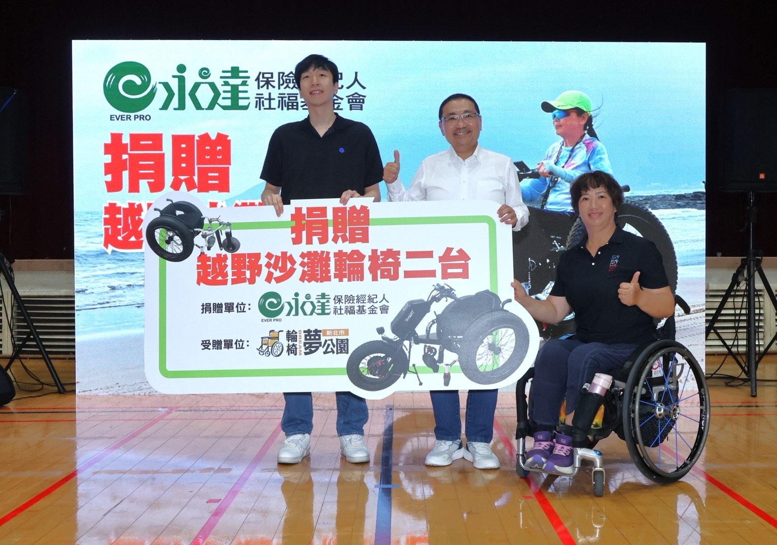 侯友宜表示,身障者健康從運動開始,「樹林體育園區」為全國首座無障礙共融體育園區,園區每年不斷精進升級,設有全國最大手搖車營運中心、專屬的身障健身房,以及輪椅攀岩等多元設施,提供安全、友善又專業的運動空間,讓身障朋友和家人可以安心同樂,在運動中增進彼此交流與情感。另外除了各項陸上身障運動的推動,也辦理水上運動體驗包含獨木舟、帆船、SUP等,讓身障者有機會接觸海洋,享受親水划行的樂趣。